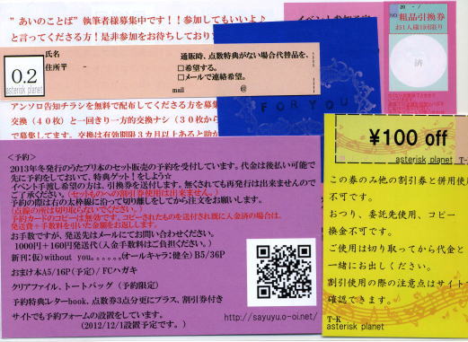 前回好評でした、100円割引き付き執筆者様募集チラシ特別セット。(今は募集締切ました。)
